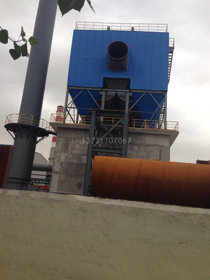 此除塵系統由電動閥、布袋除塵器、粉塵輸送裝罩(卸灰閥、刮板輸送機、儲灰倉)、主風機機組(主風機、電動機、液力偶合器)、補償器、煙氣管道、煙囪等組成。