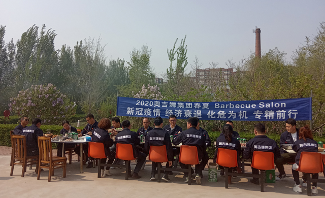 面對疫情引發經濟衰退對企業的影響,為加深理解、提升共識、堅定信念、努力奮斗,變大挑戰為大機遇,4月30日下午,在充分做好防護前提下,奧吉娜集團在綠意盎然花香四溢的奧吉娜研發園區內舉行了2020奧吉娜集團春夏Barbecue Salon 主題為:新冠疫情 經濟衰退 化危為機 專精前行。奧吉娜集團總裁魏國平博士、董事萬龍先生及各部干部骨干員工代表參加。