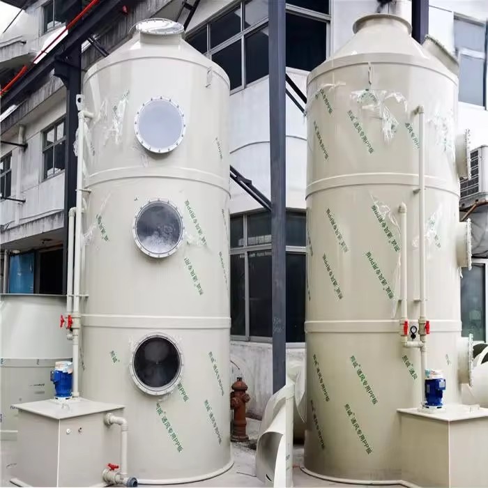 3.化學(xué)吸收劑從塔頂向下噴射,廢氣向上流動(dòng)。廢氣與吸收液完全接觸,并通過(guò)反應(yīng)除去。